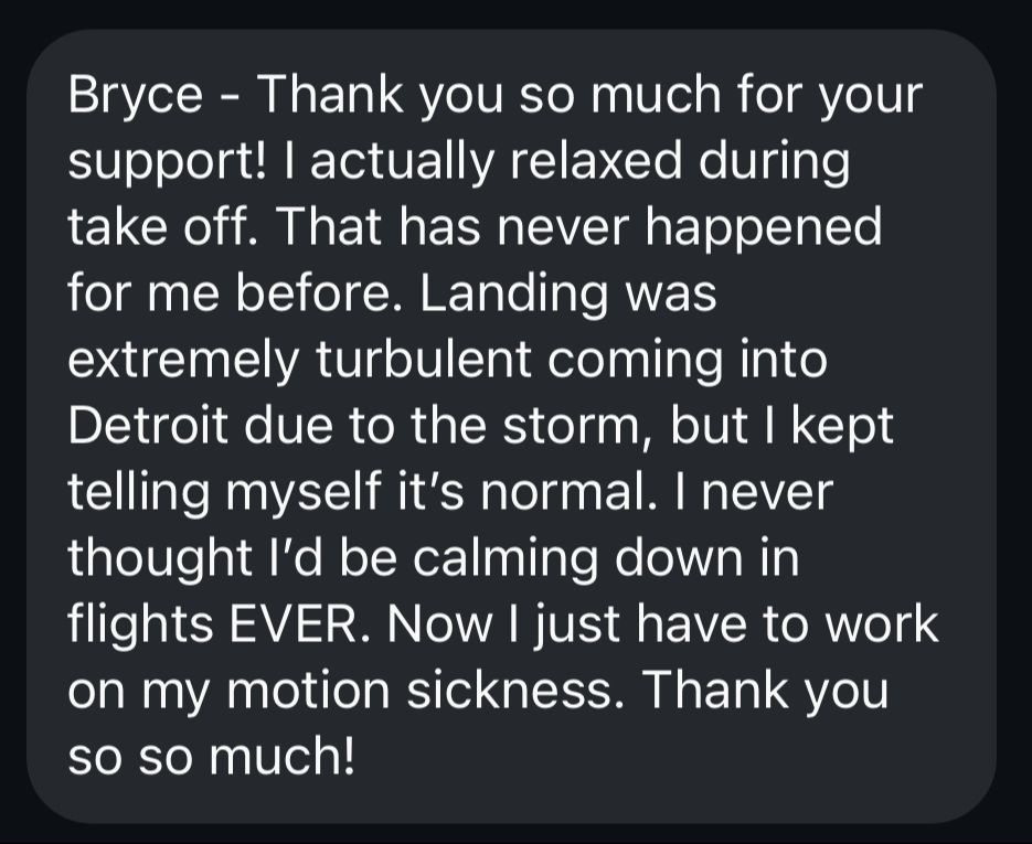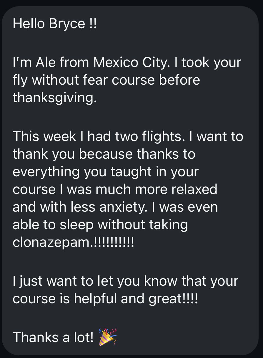 Website refers to Fly Without Fear, accessible from https://www.brycepete.com/